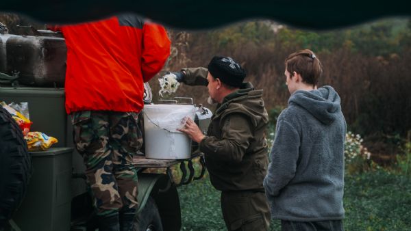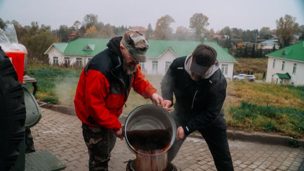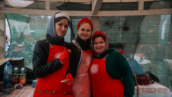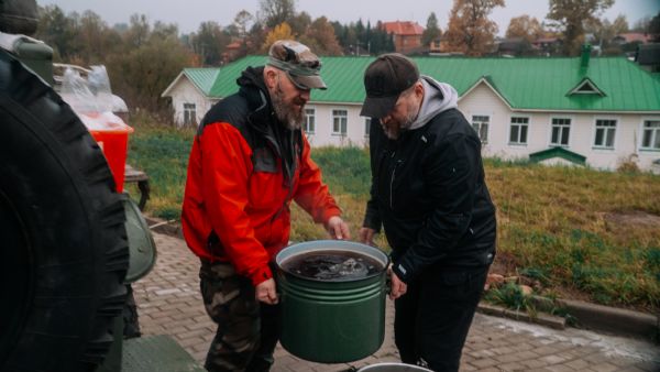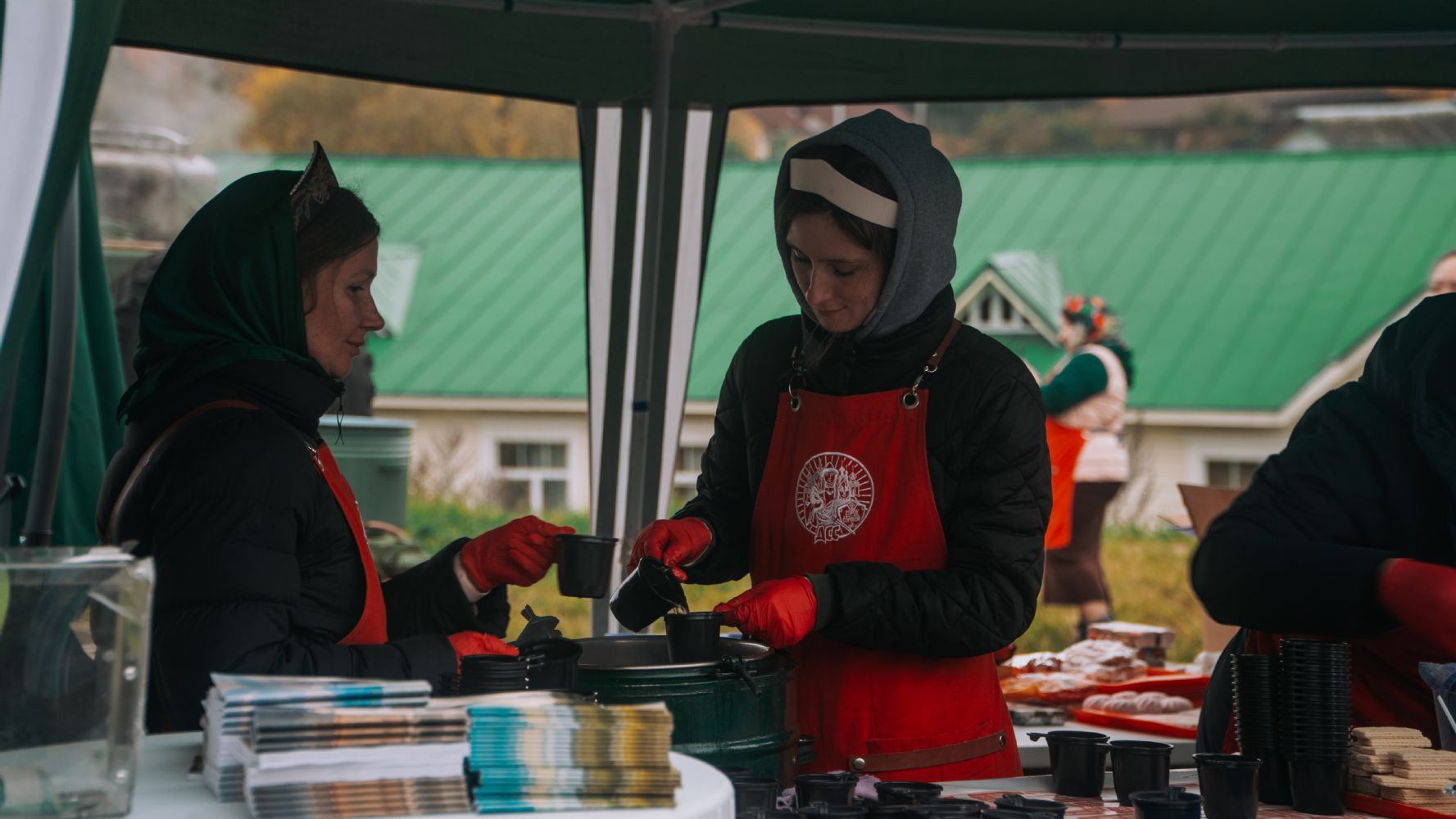 После литургии на полевой кухне было накормлено более около 2500 паломников, благодаря неизменной помощи казаков из ХКО «Котловка», братьев и сестер движения «Сорок Сороков» и АНО «Добропомощь». На обед была каша с тунцом и свежим лаврским хлебом, а согреться можно было ароматным чаем со сладостями.
