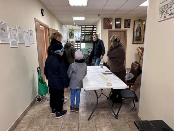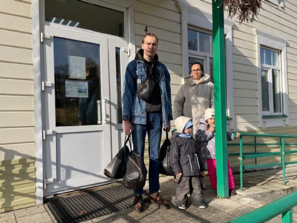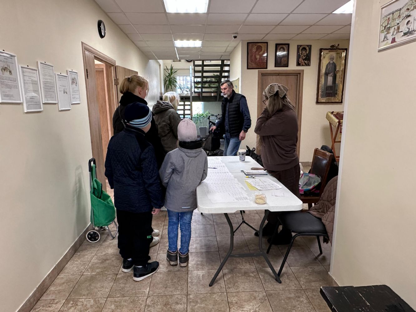 Автоволонтеры по традиции погрузили наборы в машины и поехали по адресам к тем подопечным, которые далеко живут или по состоянию здоровья не могут приезжать за наборами. При входе в дом осуществлялась выдача продуктов тем, кто живет недалеко от Лавры или могут сами прийти за набором.