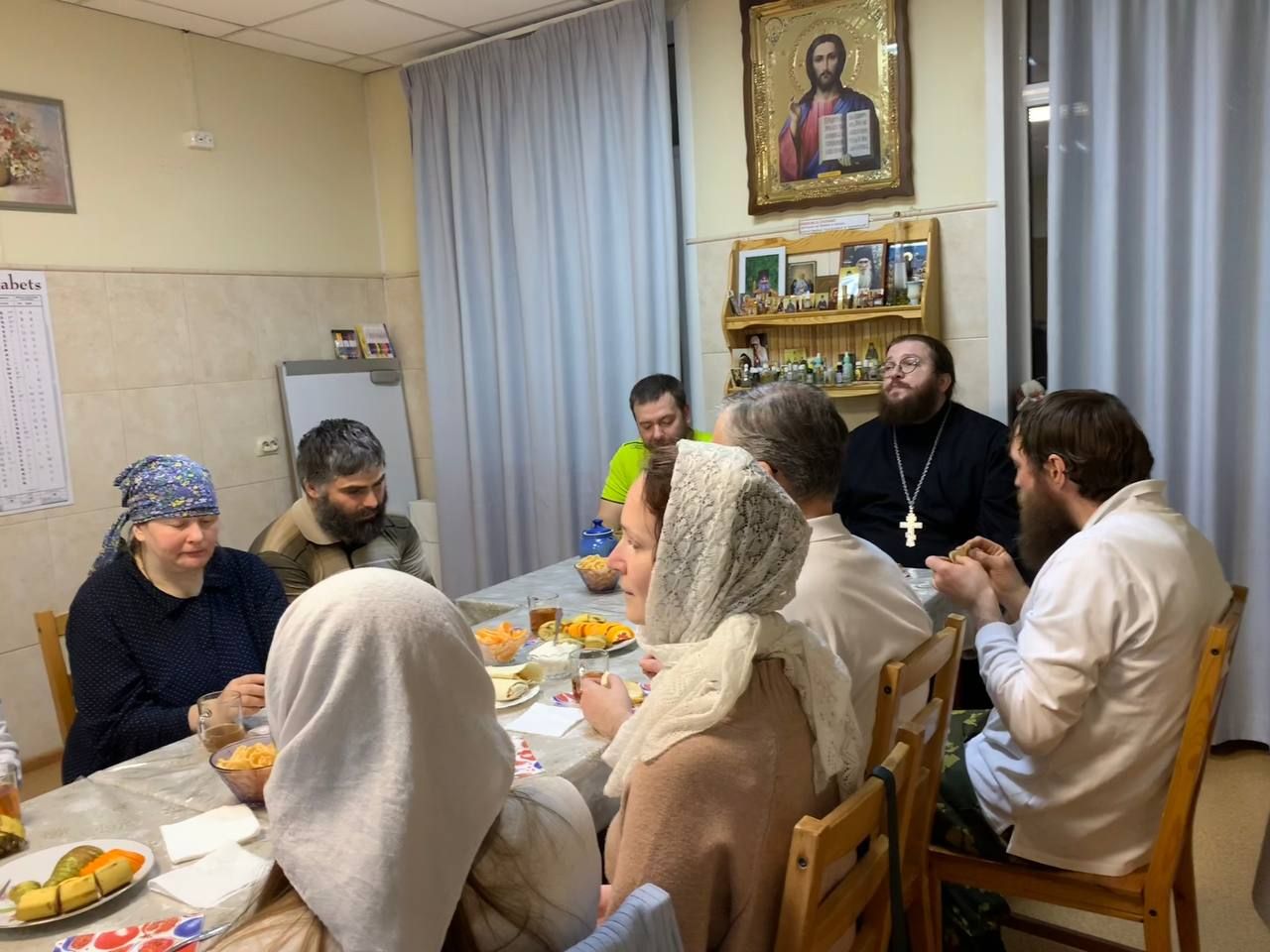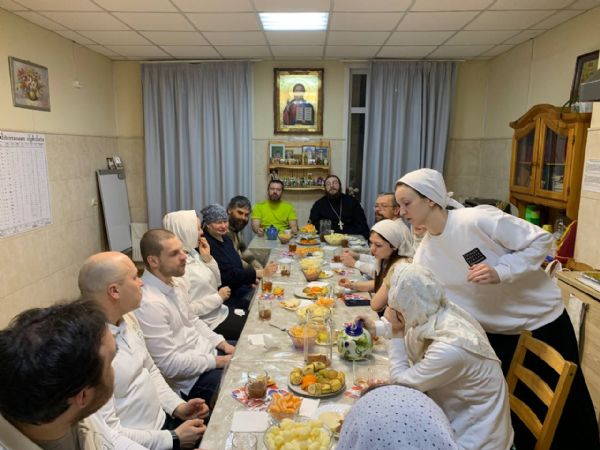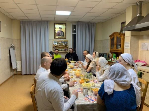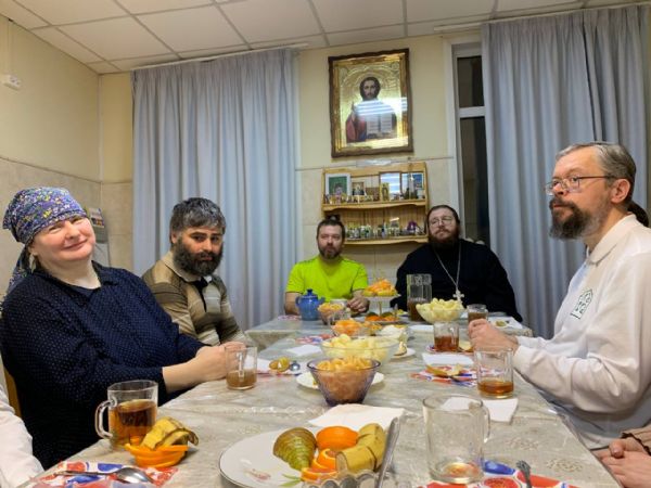 С праздником Торжества Православия поздравить волонтеров пришли иеромонах Борис и Виктор из «Русской общины».