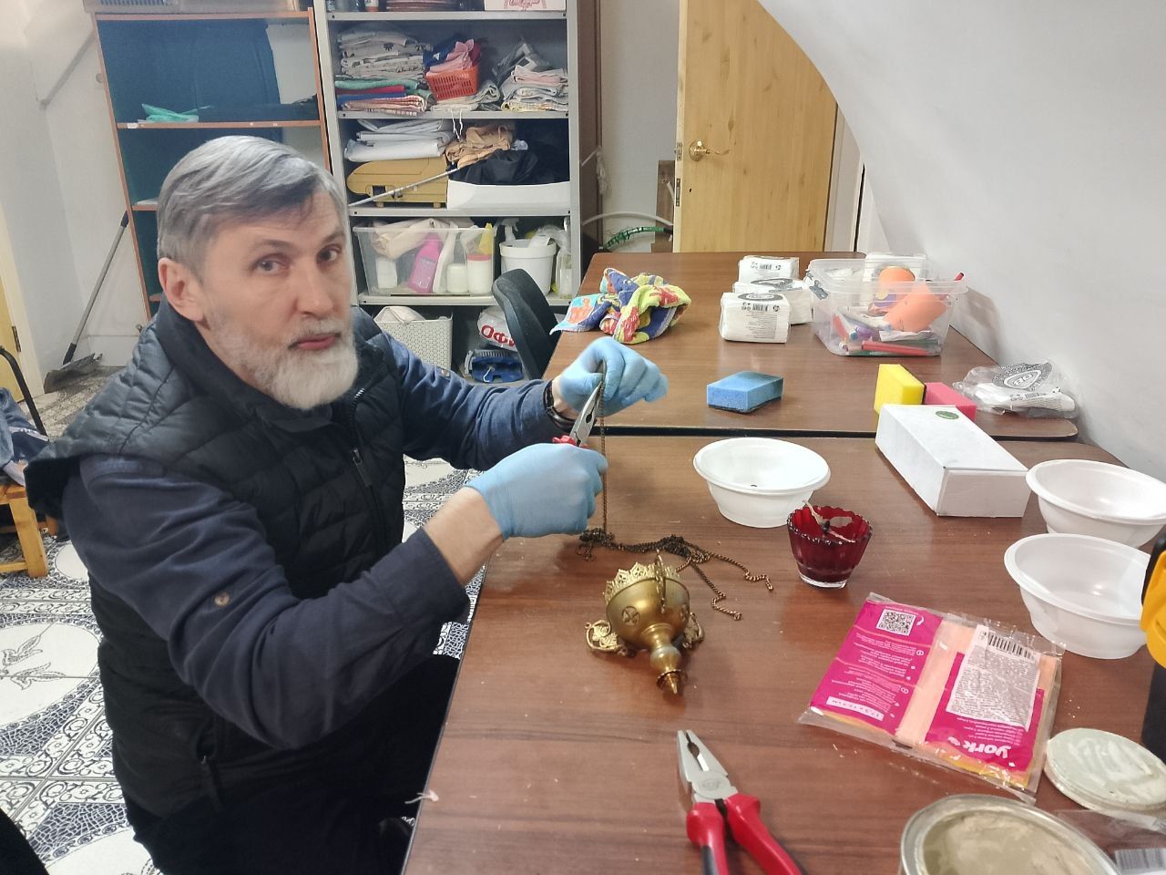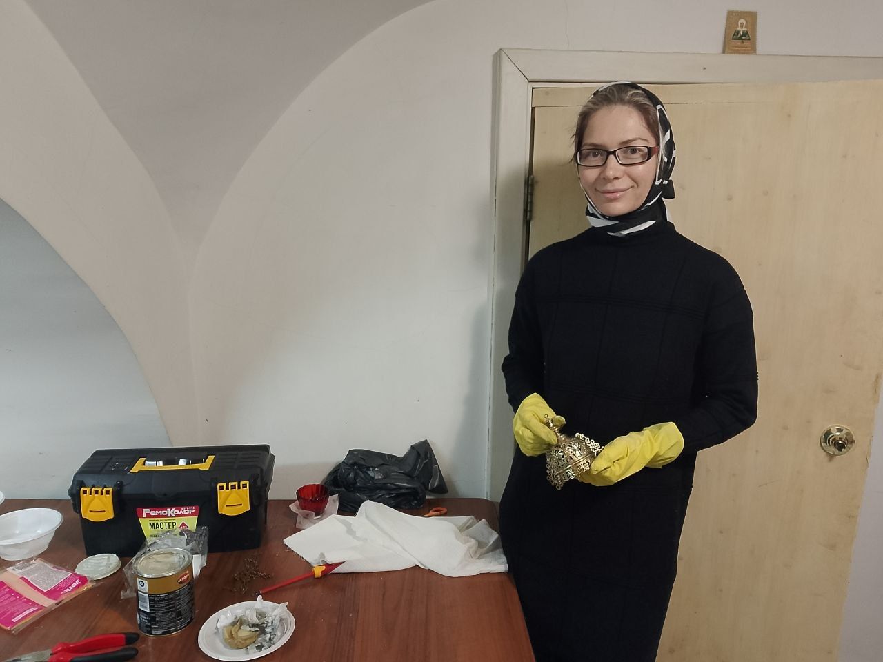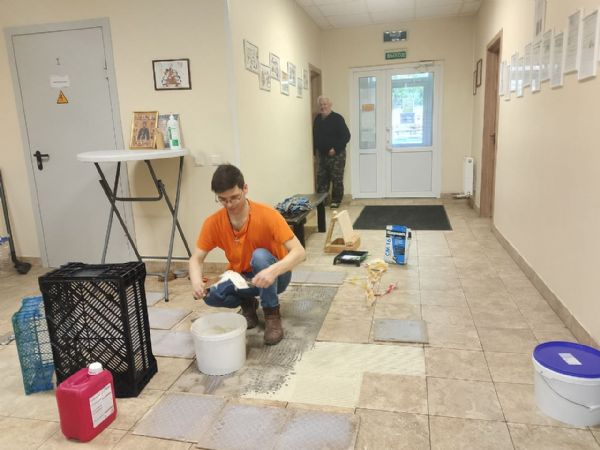 Подготовка к празднику совершалась не только в трапезной и мастерских. Сообща натирали до блеска огромное паникадило Успенского собора, помогали в уборке храмов и даже алтарей, чтобы достойно встретить Светлое Христово Воскресение. Не оставался без внимания и общий дом: в нём наводили порядок, а самые искусные и заботливые братья своими руками подлатали плитку на полу.