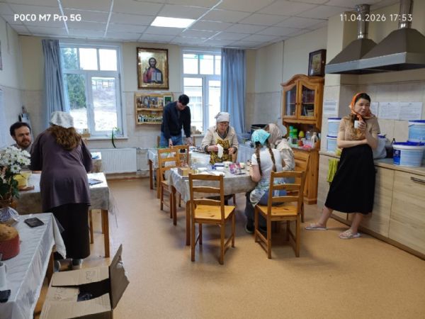 По завершении трудового дня волонтёры возвращаются в свой домик с радостной «добычей» — тёплыми, ещё не освящёнными куличами, словно предвкушая близость великого торжества.