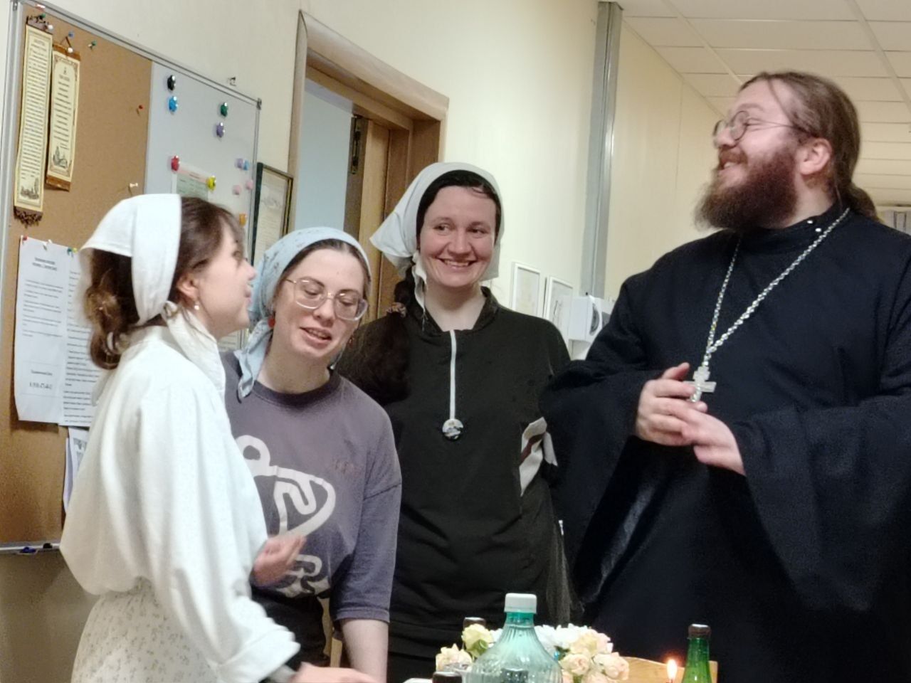 Особые слова признательности мы выражаем всем волонтерам, которые принимали активное участие в подготовке к торжествам. Даже в саму пасхальную ночь наши ребята дежурили в храмах. После ночной Литургии всех ждало большое утешение. Похристосоваться с волонтерами и разделить разговление за праздничным столом пришли иеромонах Борис и иеродиакон Евгений!