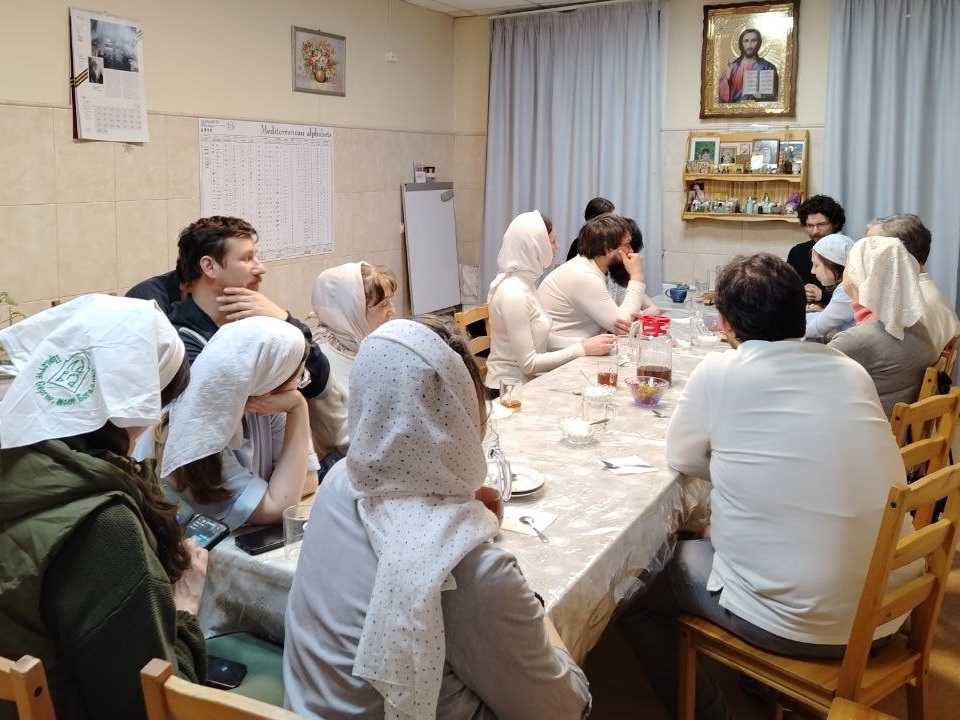 «Русская община» вновь в гостях у Преподобного Сергия! Радостно, что посещение обители община начинает с посещения литургии и причастия. Помолившись, все направились на трапезу, после которой состоялась беседа «О семье и семейных