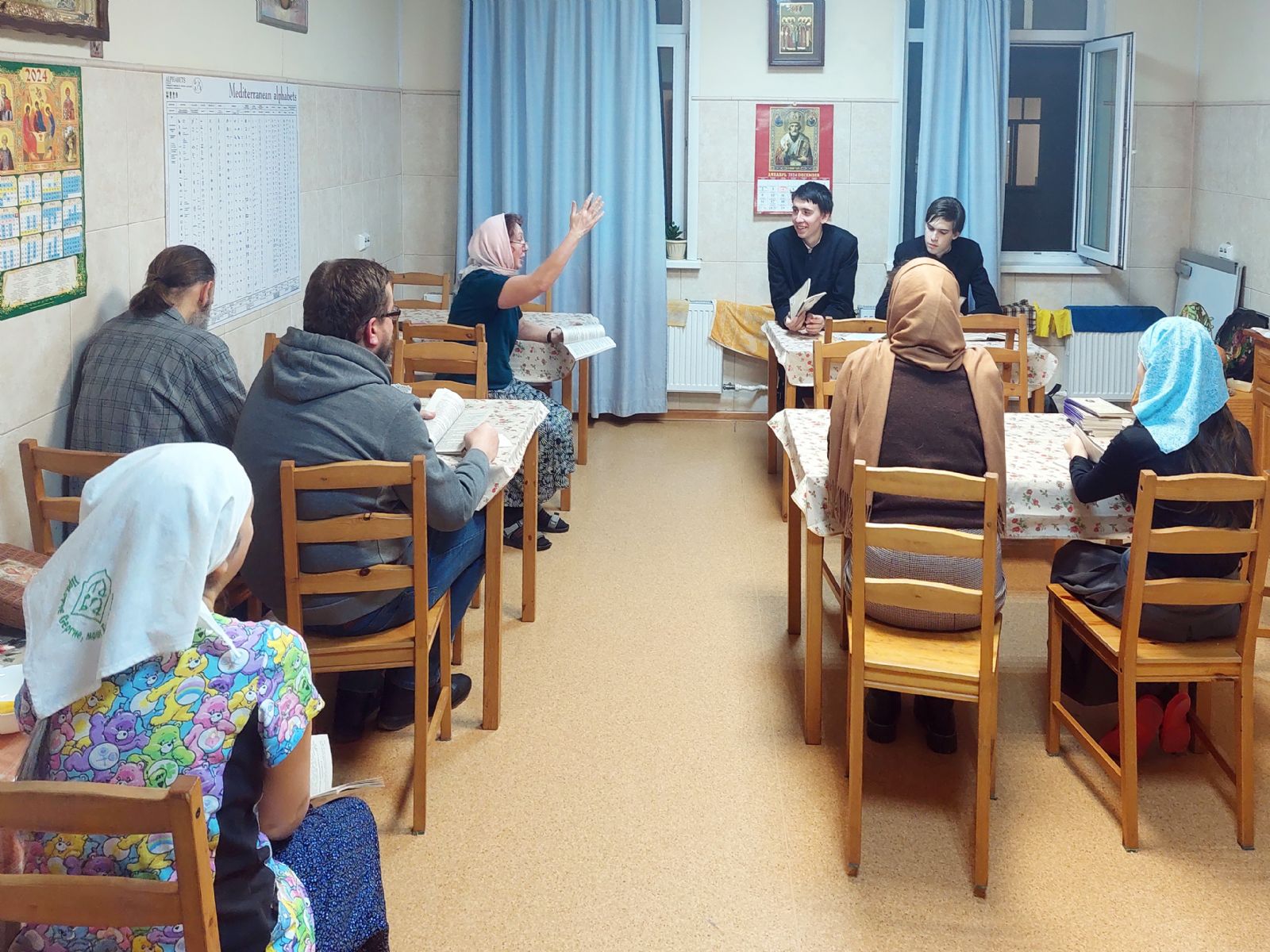 Во вторник вечером после дневных трудов наших волонтеров снова ожидало приятное утешение — состоялась еще одна встреча с насельником монастыря игуменом Вонифатием. Отец Вонифатий провел заключительную лекцию по курсу Вводного катехизиса митр.